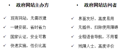 应此条例中中对于网站无障碍信息交流的规定,推出网站信息无障碍服务平台软件,打破传统的网站无障碍事实模式,以安装便捷、实施快速、无使用门槛的软件系统,帮助政府主办方快速、低成本地完成整个无障碍服务平台部署,在最短的时间内为其网站浏览者提供全方位的信息无障碍服务。