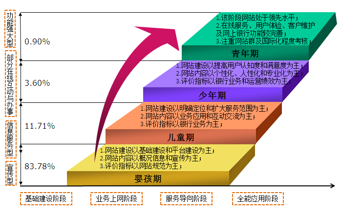 随着信息技术的发展,也为了迎合用户对于网上信息浏览与交流的倾向,金融网站建设在金融运营中占取的比利越来越大。特别是近几年金融网站服务逐渐覆盖了“业务服务创新、业务流程管理、客户关系管理”等业务领域,成为市场竞争的重要武器,网站服务在行业中占据越来越重要的位置,网站服务也由一开始的单纯提供信息到现在的网站在线咨询、业务处理、网上金融等诸多服务。